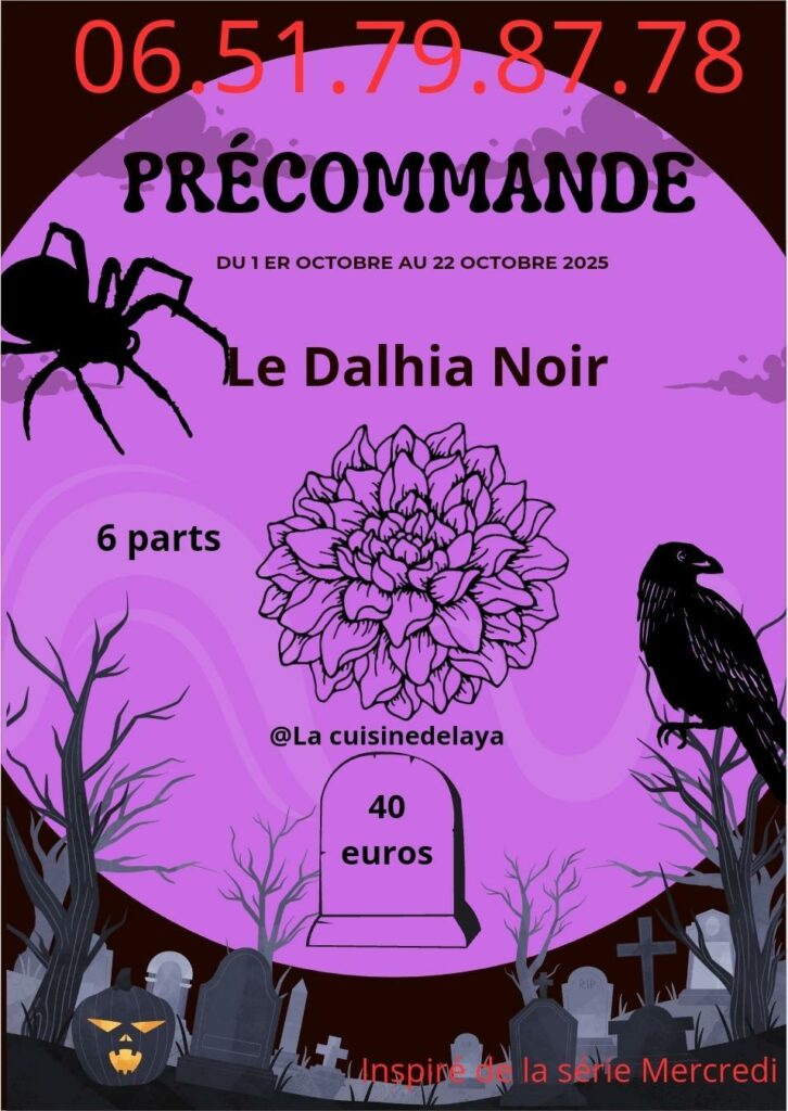 du 1 er octobre au 22 octobre 2025 précommande du gâteau inspiré de la série la plus folle et horrifiante des Addams.
